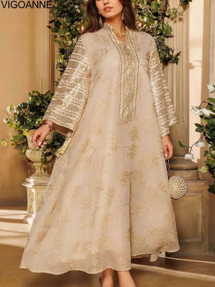 تميّزي بإطلالة تخطف الأنظار مع عباية إسلامية مطرزة بأوراق شجر مصمم ليليق بكِ