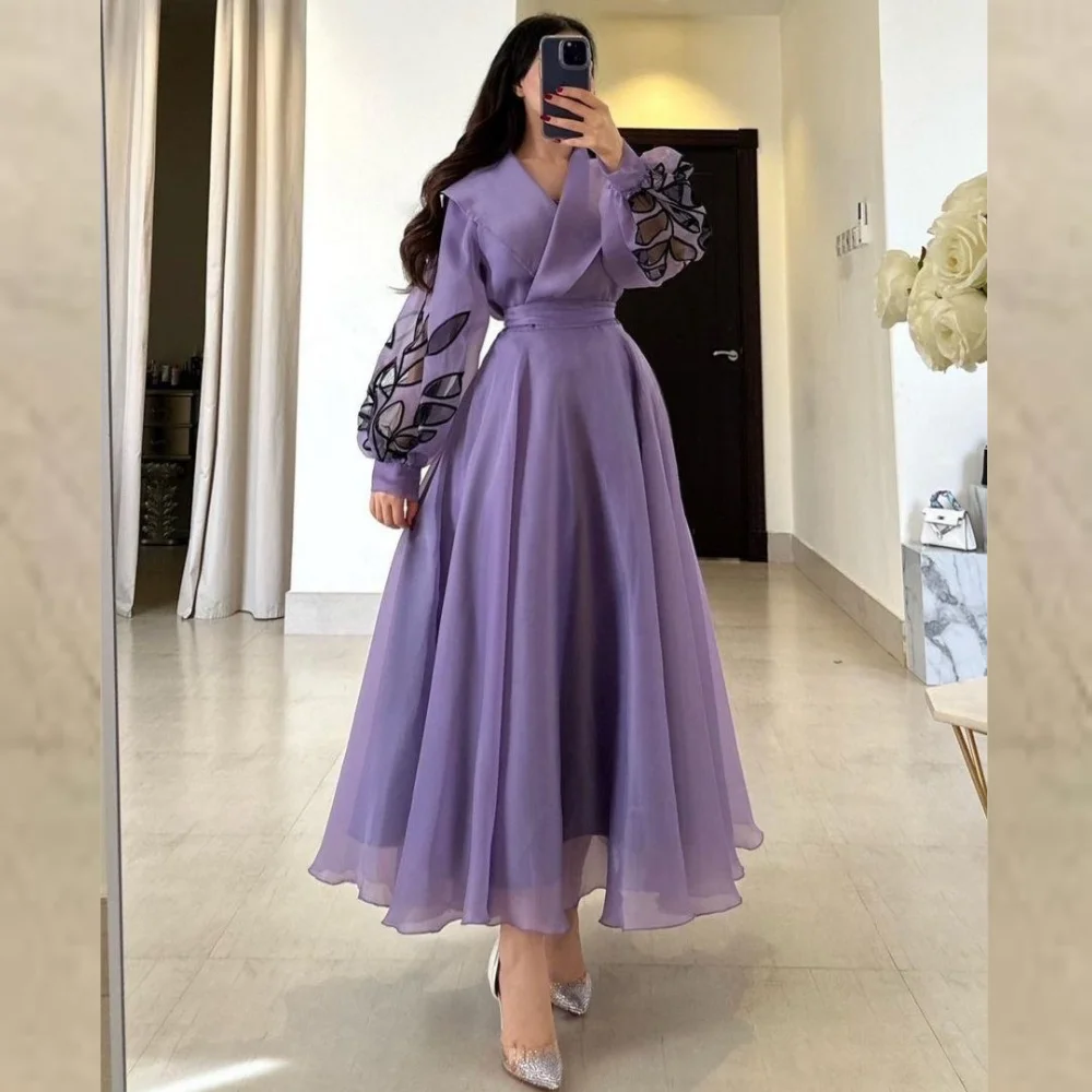 - اسم المنتج: فستان انيق بأكمام مطرزة وخصر مشدود