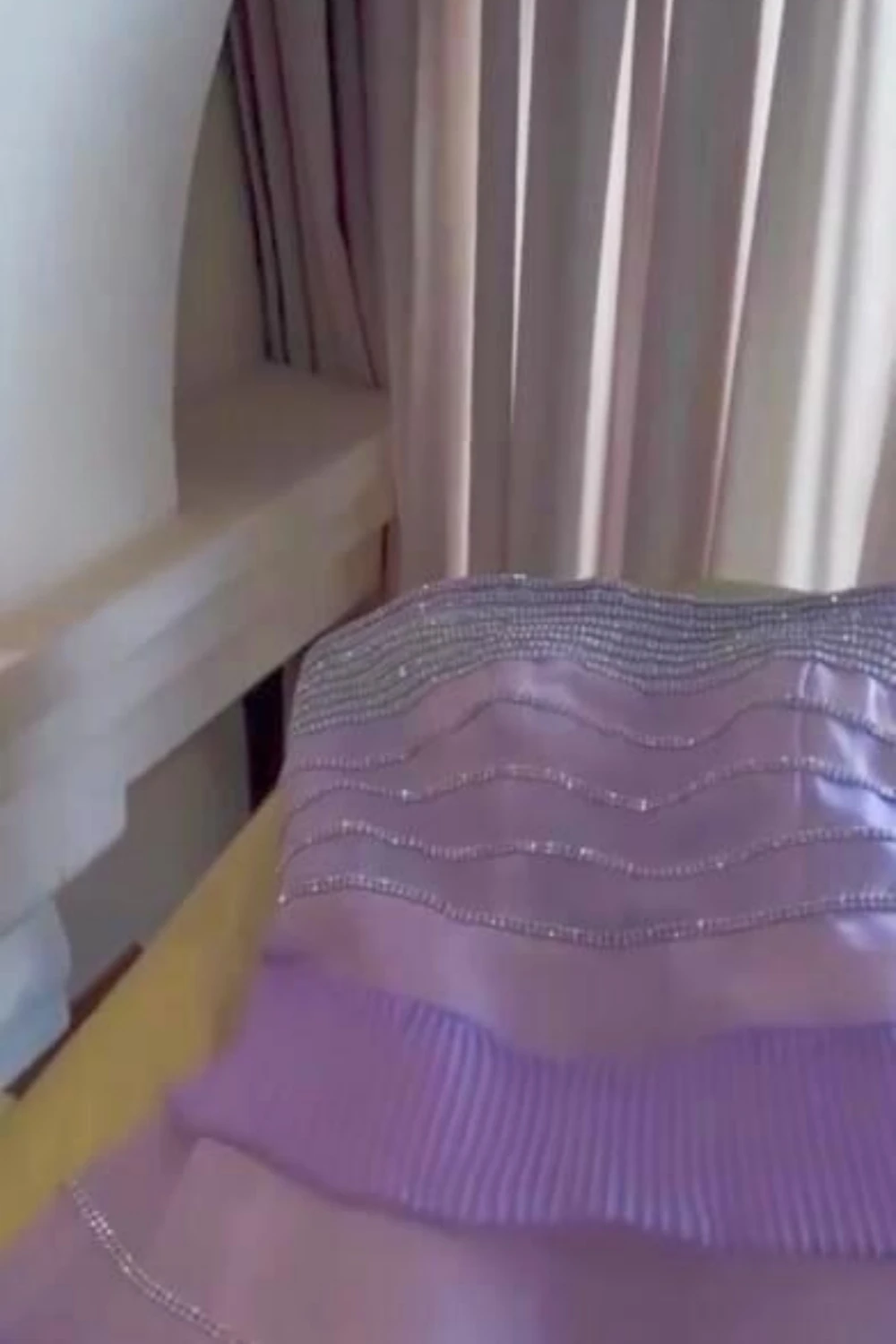 فستان من الساتان بأكمام طويلة وطيات